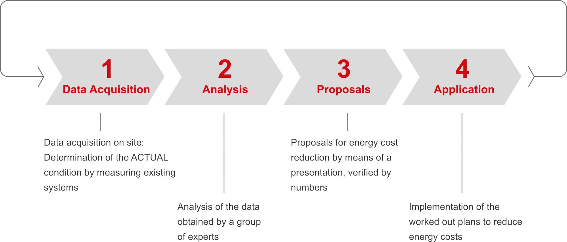 Together with you, we will examine and asses the state of your plant and with our specialists, we will analyze ecologically and economically valuable optimization potentials in terms of the desired production and sustainability goals. You will then receive our concrete proposals and layouts as well as reliable operating numbers as basis for your decision.