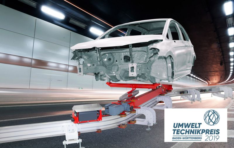 Usually, car bodies are transported through the paint shop on a steel slide (skid). The PaintMover provides the driverless transport of the car body through the overall coating process without a skid. The skid no longer needs to be heated up and cooled down unnecessarily during the coating process. It is resource-saving and thus sustainable.